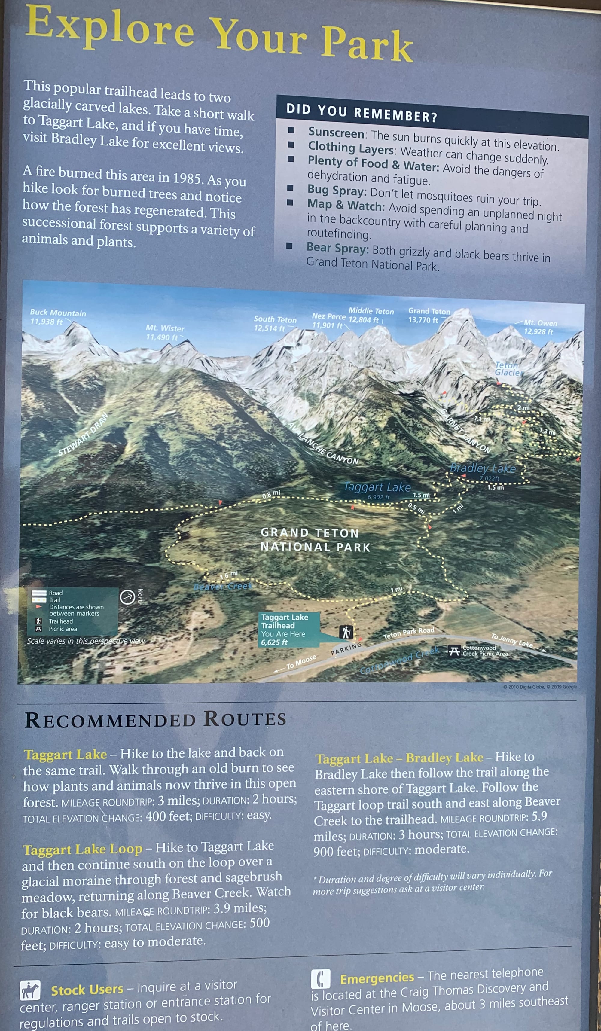 - Duration: 3.8 miles round trip, approximately 2 hours 6miles round trip for Taggart Lake and Bradley Lake Loop.