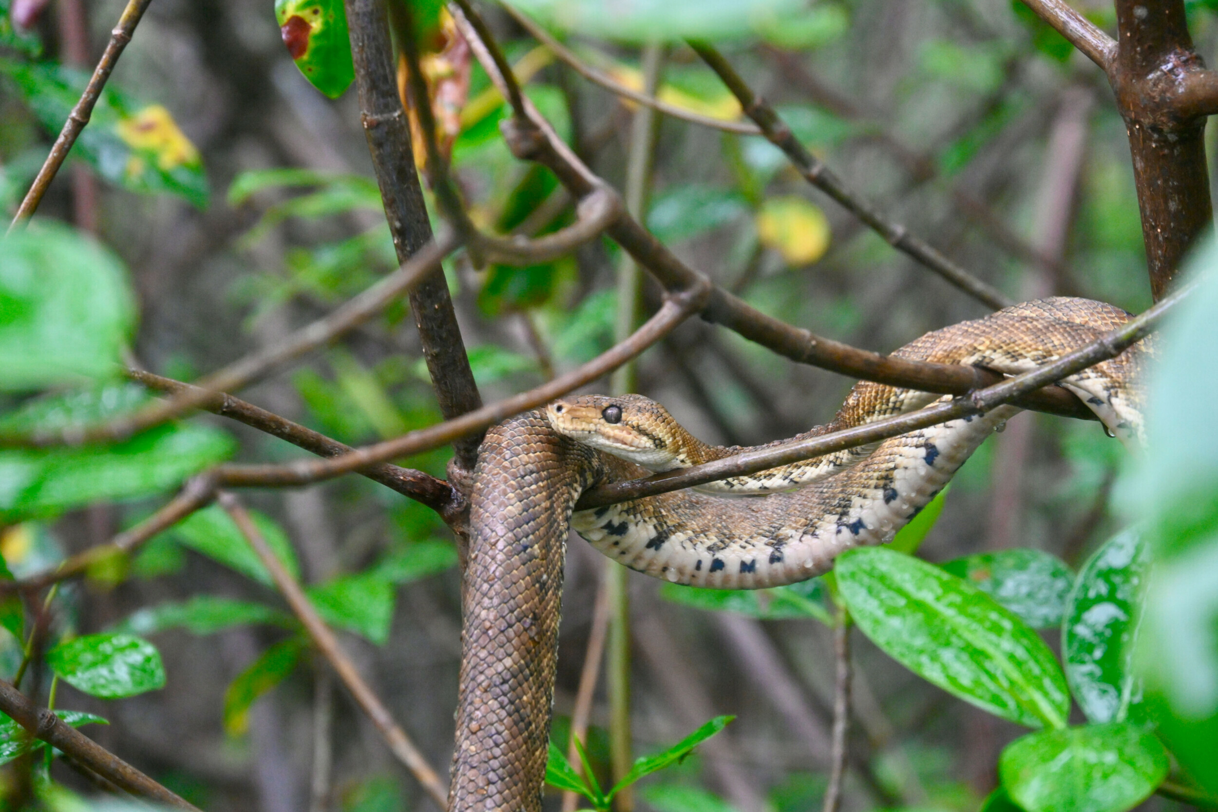 As we navigated the waterlogged pathways, sloths observed us from their rain-drenched perches, embodying the serene beauty of the rainforest. The Common Basilisk, with its ability to sprint across water surfaces, offered a glimpse of the extraordinary. Meanwhile, the Boa Constrictor and other snakes, adorned with raindrops, showcased the elegance and resilience of the rainforest's inhabitants. The air, filled with the flutter of various bat species, brought the forest to life, creating a symphony of natural wonders that resonated deeply with our adventurous hearts.