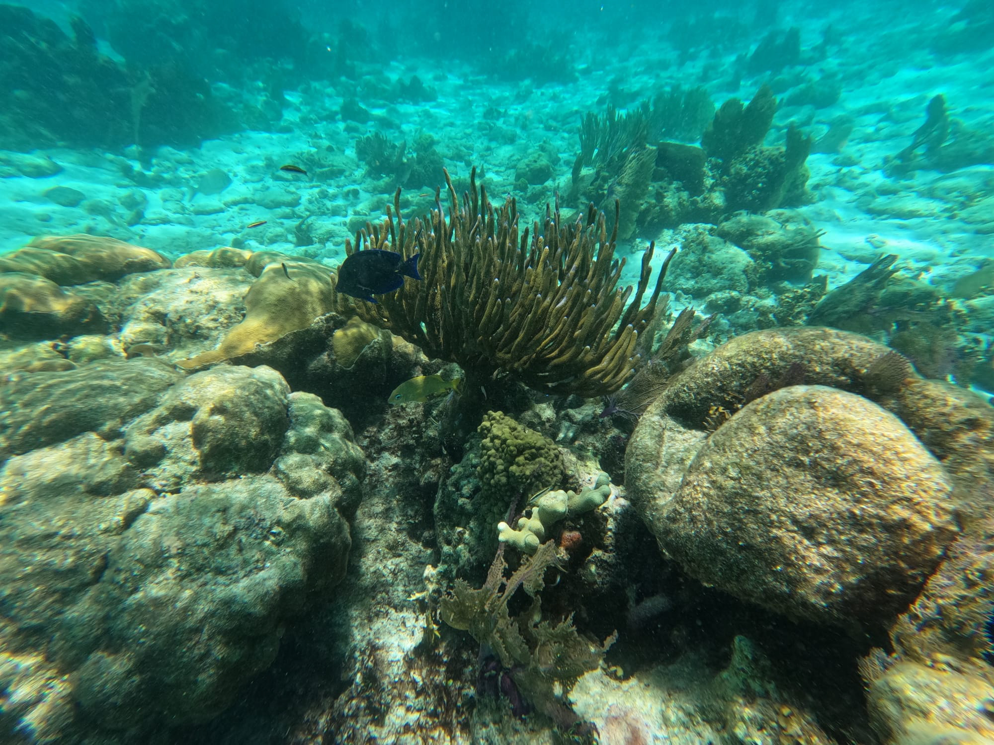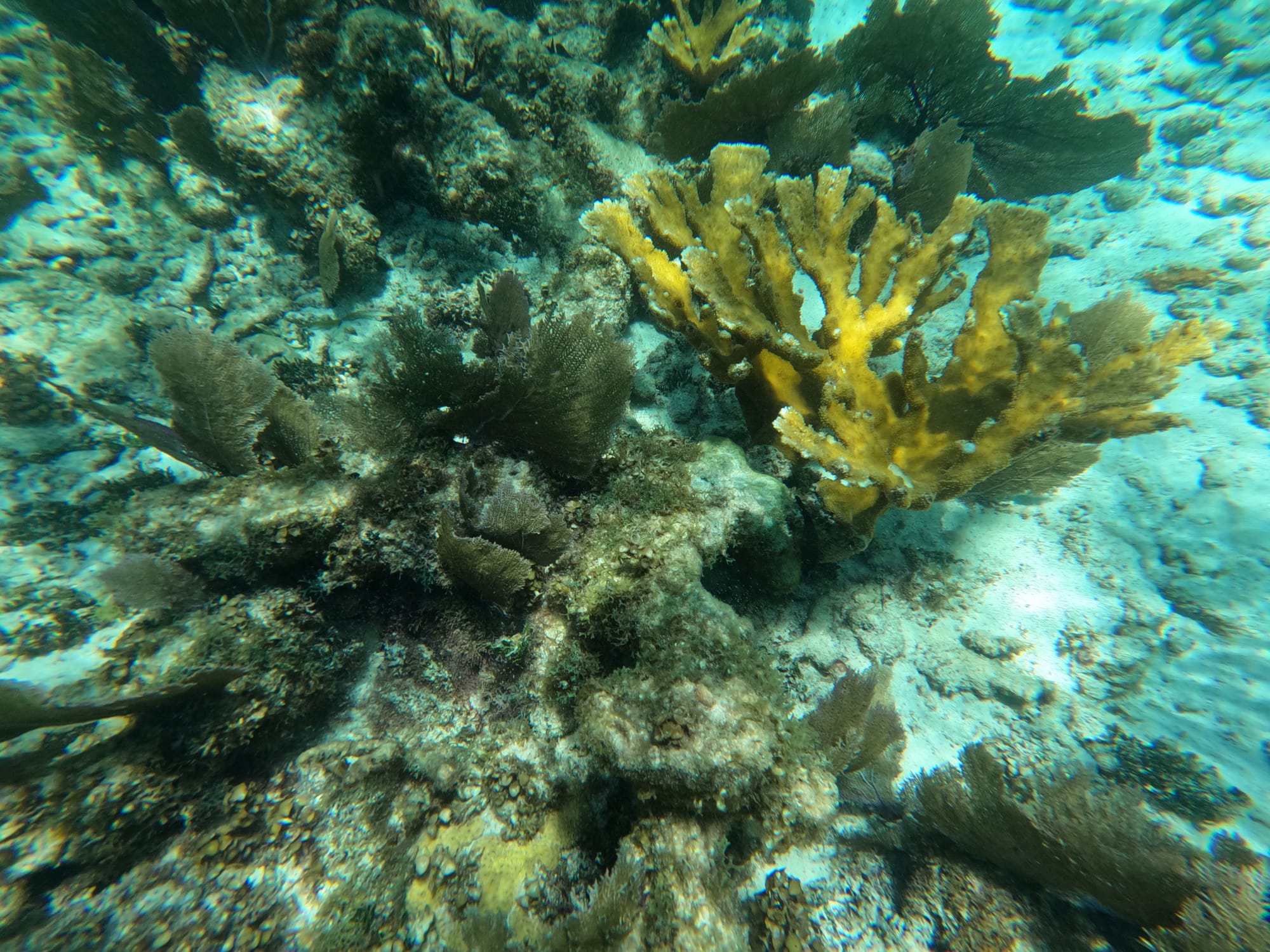 - Marine Life: Large brain coral, elkhorn coral, and a variety of tropical fish.