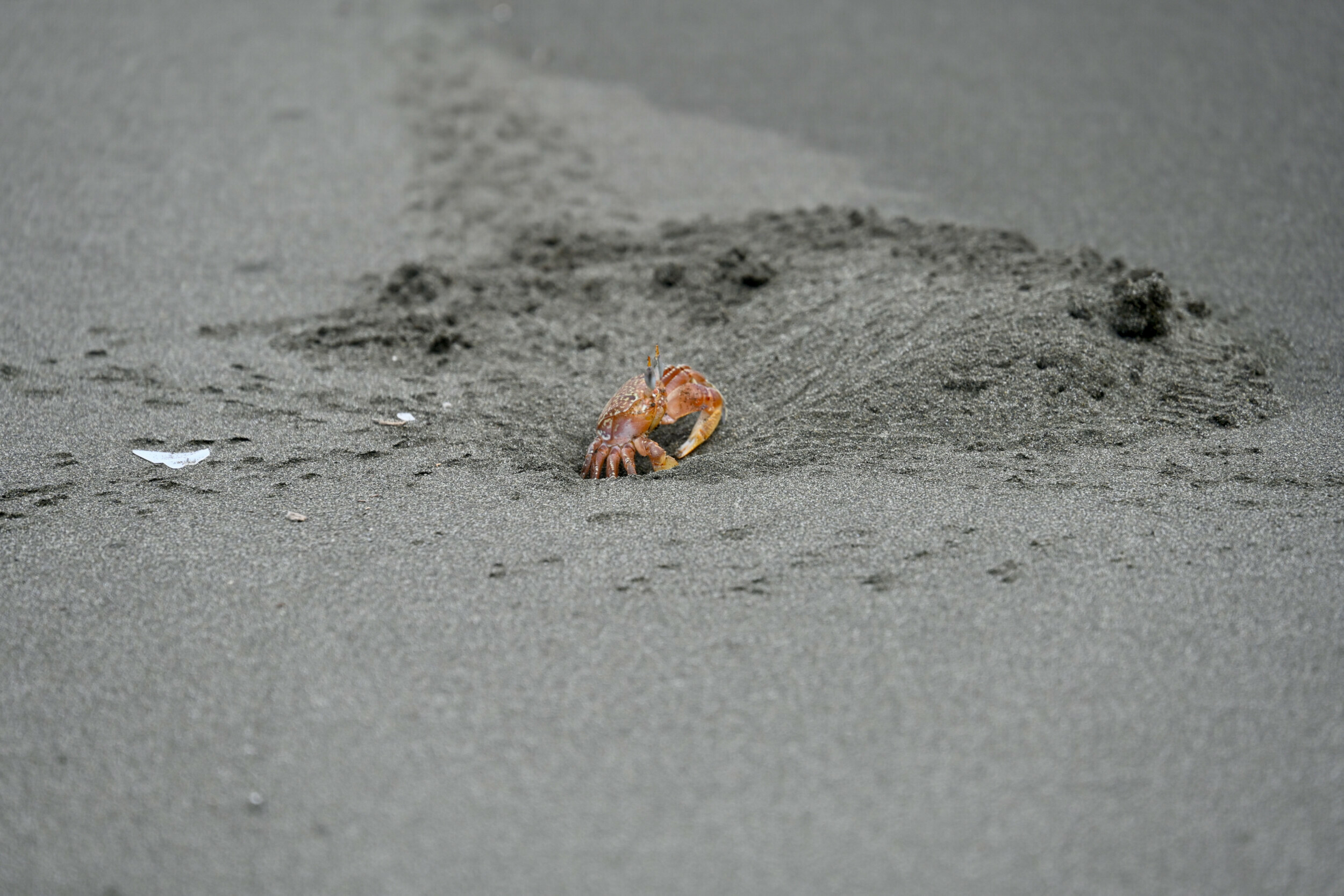 The allure of Palo Seco Beach compelled us to immerse ourselves in the Pacific, capturing moments of beauty that no camera could fully encapsulate. The warm waters, the surf-friendly gently sloping shore, and the life-filled black sandy beach, with crabs darting from their holes at each wave's approach, offered an unforgettable experience. On the bay side, the presence of numerous monitor lizards and iguanas, basking on the seldom-used roads and scattering at the sound of an approaching car, added to the day's unique encounters. This was undoubtedly a place where one could easily spend days, if not weeks, soaking in the natural beauty and tranquility.