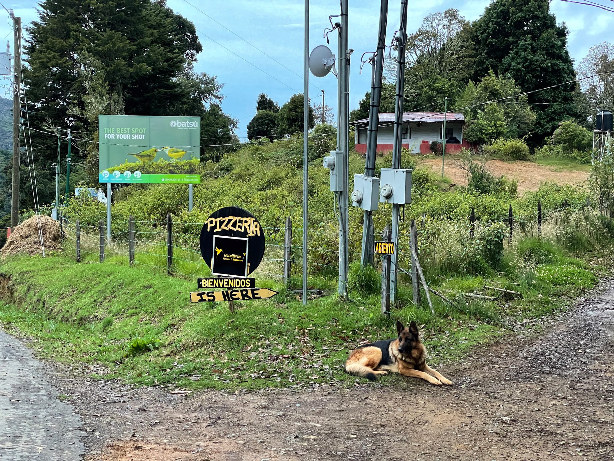 A cozy and welcoming scene in San Gerardo de Dota, Costa Rica, featuring a local pizzeria and the charming wooden cabins at Cabinas San Gerardo. Nestled in the lush, misty mountains, this serene retreat offers delightful culinary experiences and tranquil accommodations, perfect for nature lovers and adventurers.